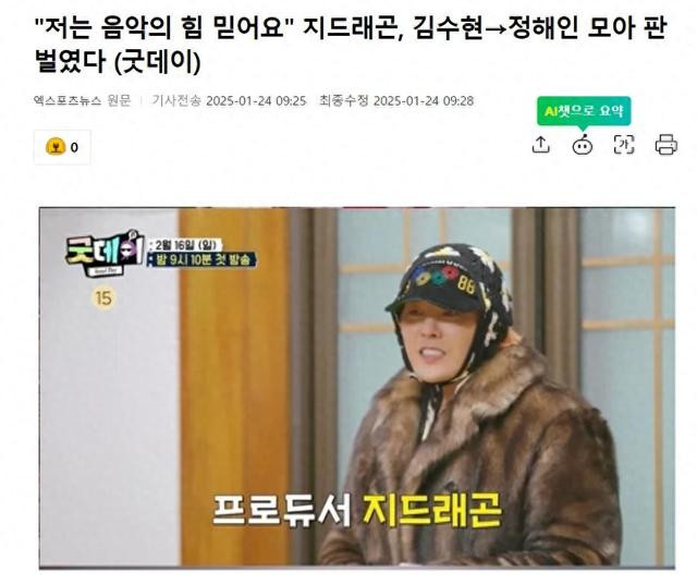 2月16日,MBC的全新综艺节目《Good Day》将正式首播,宣布了权志龙的超级音乐项目!这次,他不仅是制作人,还是亲自策划一场“音乐盛宴”,带领各界大咖共同打造出一首能成为2024年经典的年度歌曲!